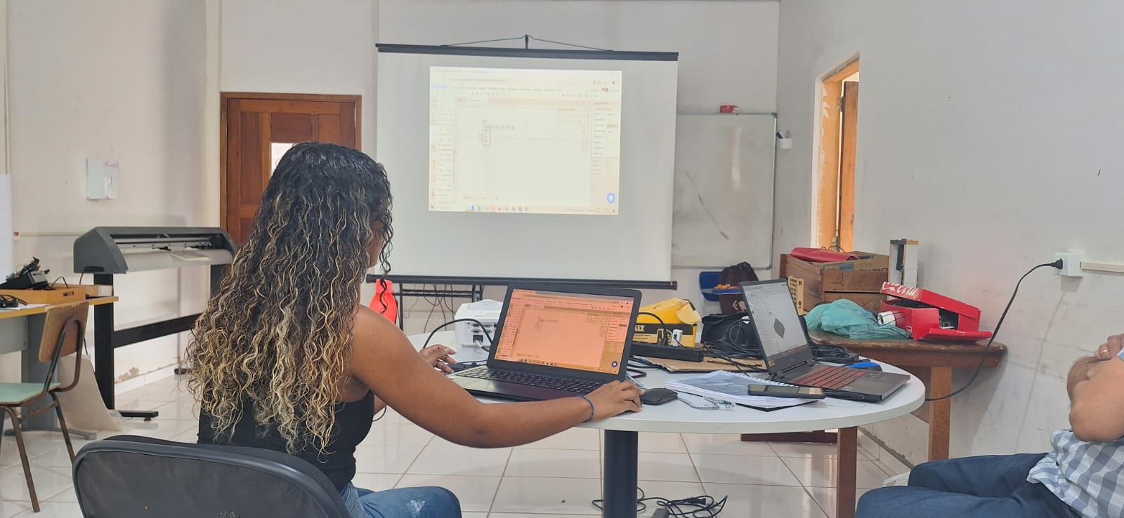 Dito isto, no dia 08 de maio de 2024, a discente Jéssica Sousa membro efetiva do FABLAB nos forneceu uma aula sobre as PCI que partiam desde sua criação em um sotware até a fabricação da placa. Segundo Jéssica a fabricação de uma PCI no laboratório atualmente pode ser feita de duas maneiras, após o design no prgrama EasyEAD, podendo ser através de uma fresa para circuito impresso ou por meio de corrosão que utiliza o produto químico Percloreto de Ferro (\(FeCl_3\)).